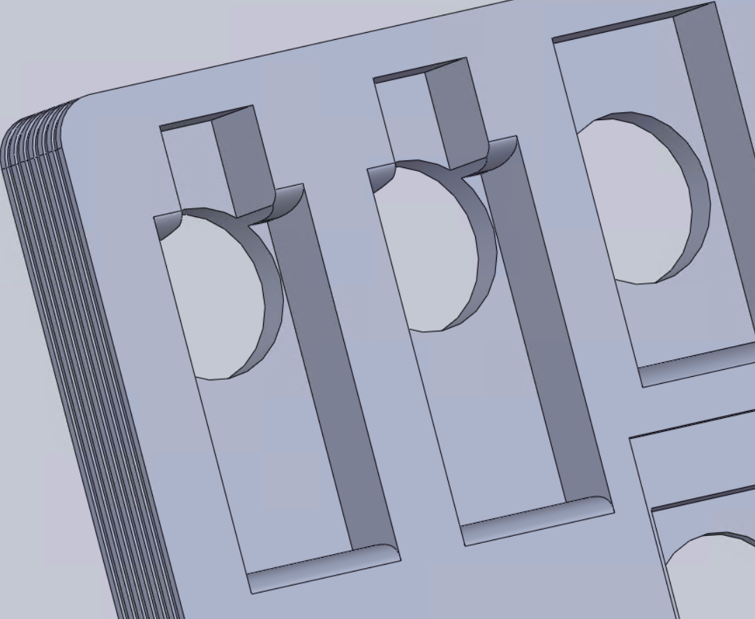 I created the initial cavities for the parts, without worrying too much about the dimensions being accurate. The main concern was making sure all the parts could fit onto the card. It features a slot on the side, where the SIM eject tool can slide into.